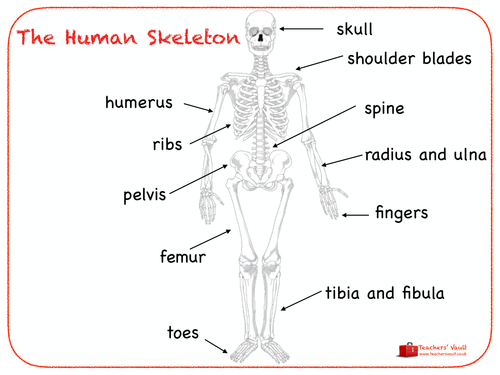 Human Skeleton Labelling Sheet | Human Bones Labelled Use this worksheet pack with your third to fifth grade class to help teach them biology and to name the different parts of the human skeleton. This resource includes a labelled diagram, which can be used for reference or as part of a classroom display. It can also be used as an answer sheet for the human skeleton labeling activity included.