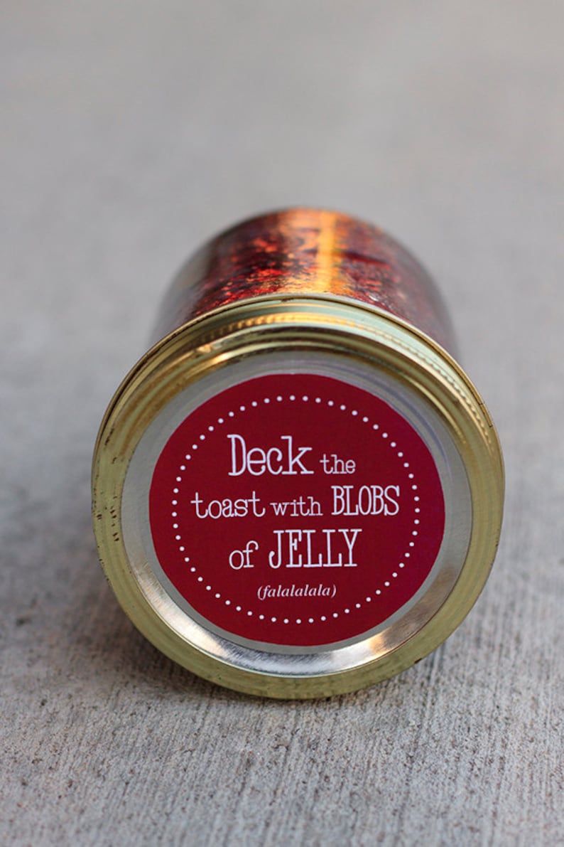 Hope Your Holidays are Jam Packed with Fun - Neighbor Gift Idea Jam Labels Assembling these jam gifts is so easy! All you need to do is Print Your Jam Labels . Red Jam Labels Pink and Green Jam Labels Simply right click on the link to the printable you want to use (see above) and download it to your computer. Then print. We suggest using card stock if possible. Use good scissors to cut out your circles.
