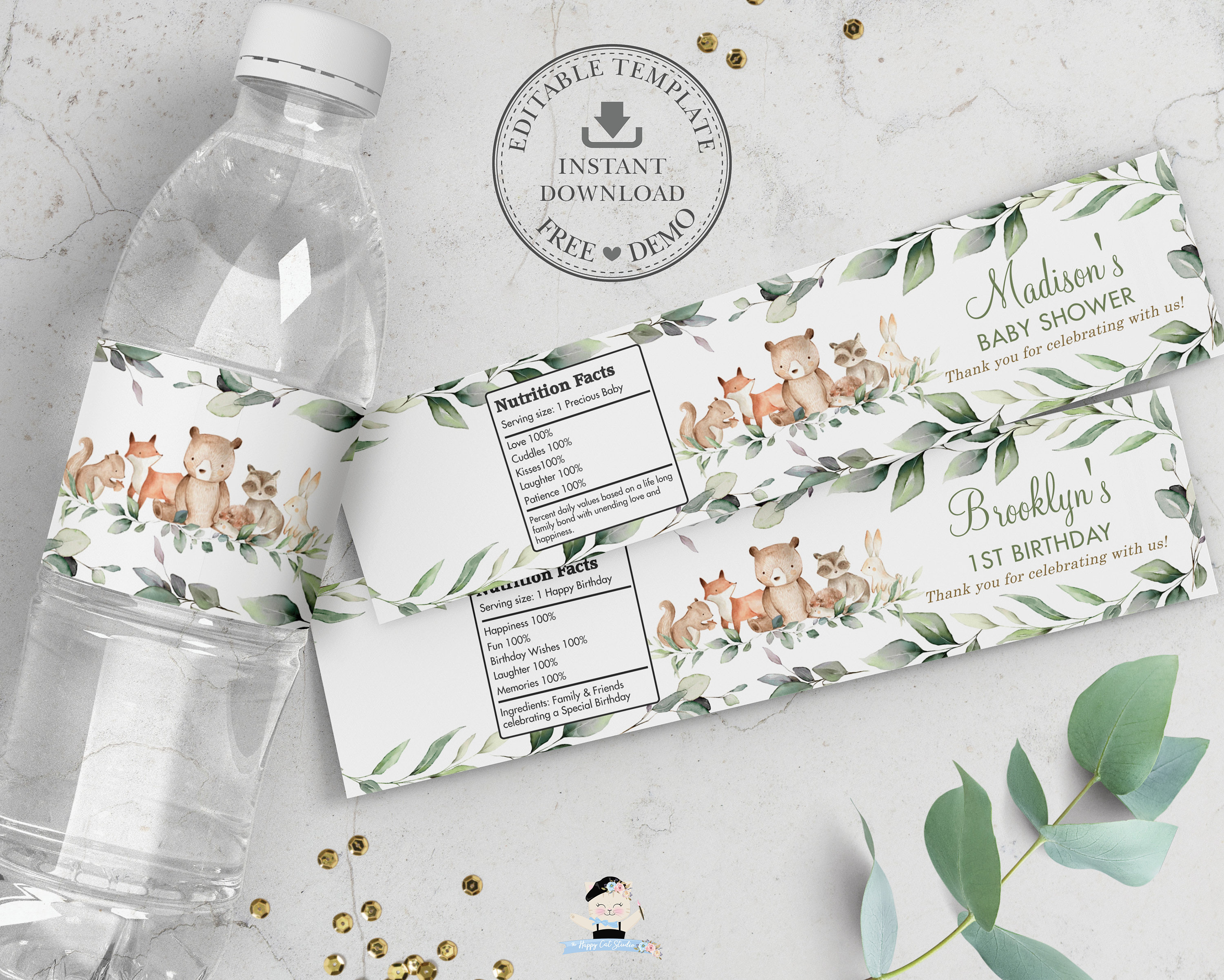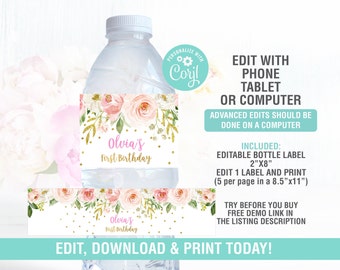 Blush Pink Floral Bottle Label, Editable Water labels Printable,1st Birthday Template,Floral Party,Pink and gold Boho Girl, Instant download