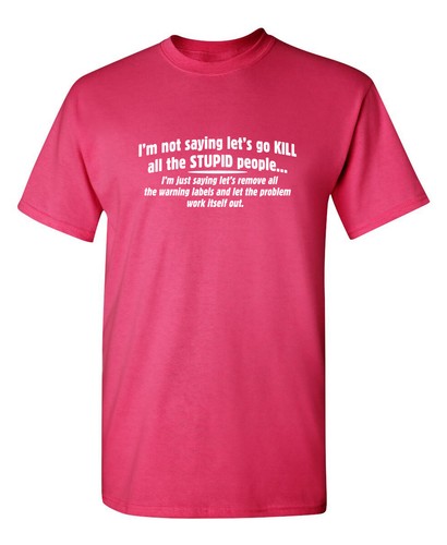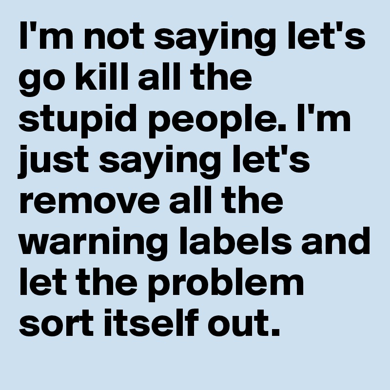 I'M NOT SAYING LET'S GO KILL ALL THE STUPID PEOPLE ... I'M NOT SAYING LET'S GO KILL ALL THE STUPID PEOPLE… I'M JUST SAYING LET'S REMOVE ALL THE WARNING LABELS AND LET THE PROBLEM SORT ITSELF OUT: Funny .